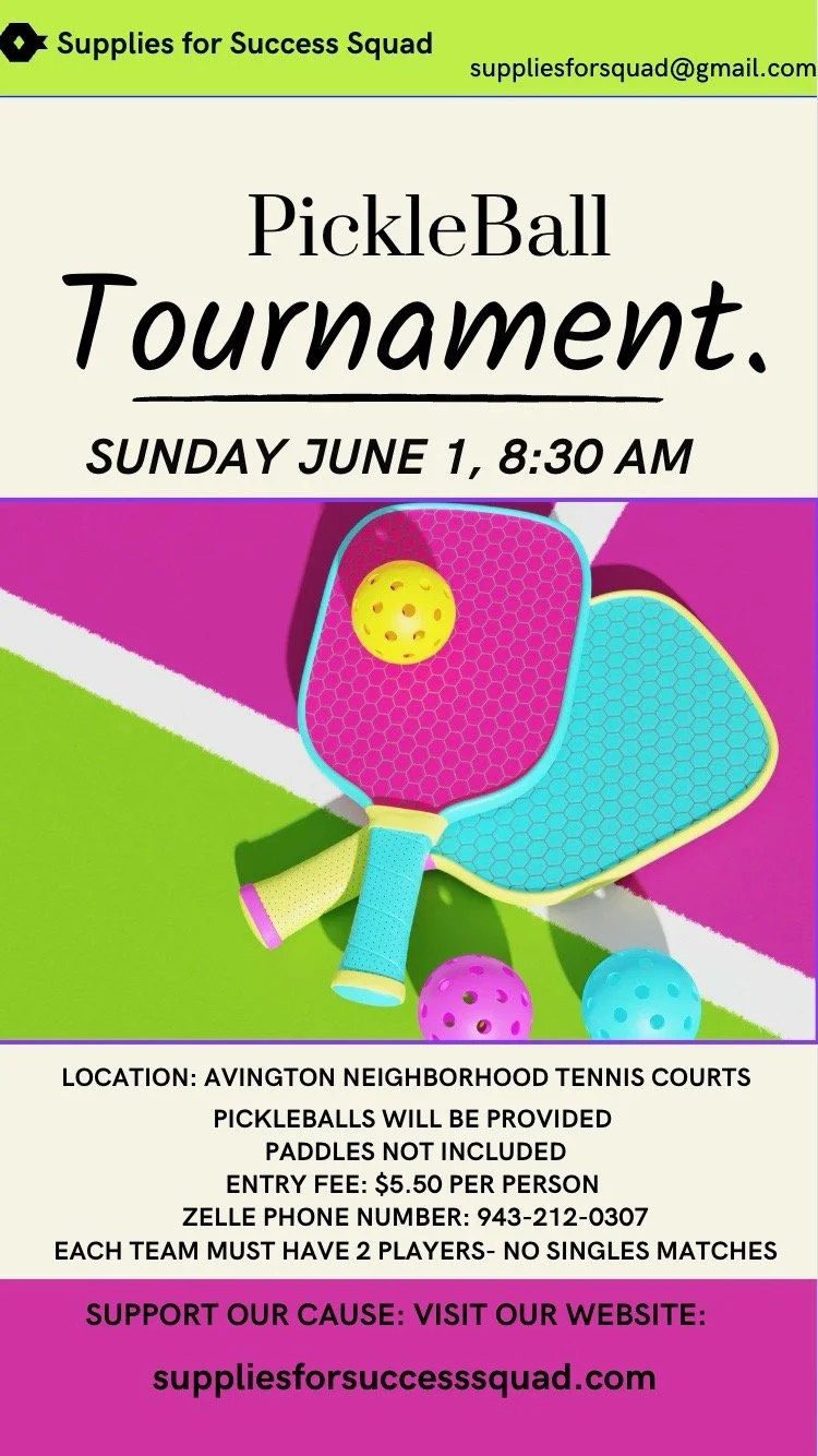 We’re excited to host our upcoming Pickleball for a Purpose Event on June 1st, which is a fun way to bring the community together while raising money to support students in need.